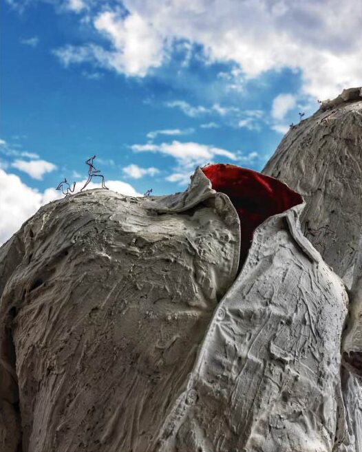 コメント:「アートの服に沢山の小人が登っていたので、この日天気が良かったので青空の下で山登りしているかのように撮影させていただきました。」